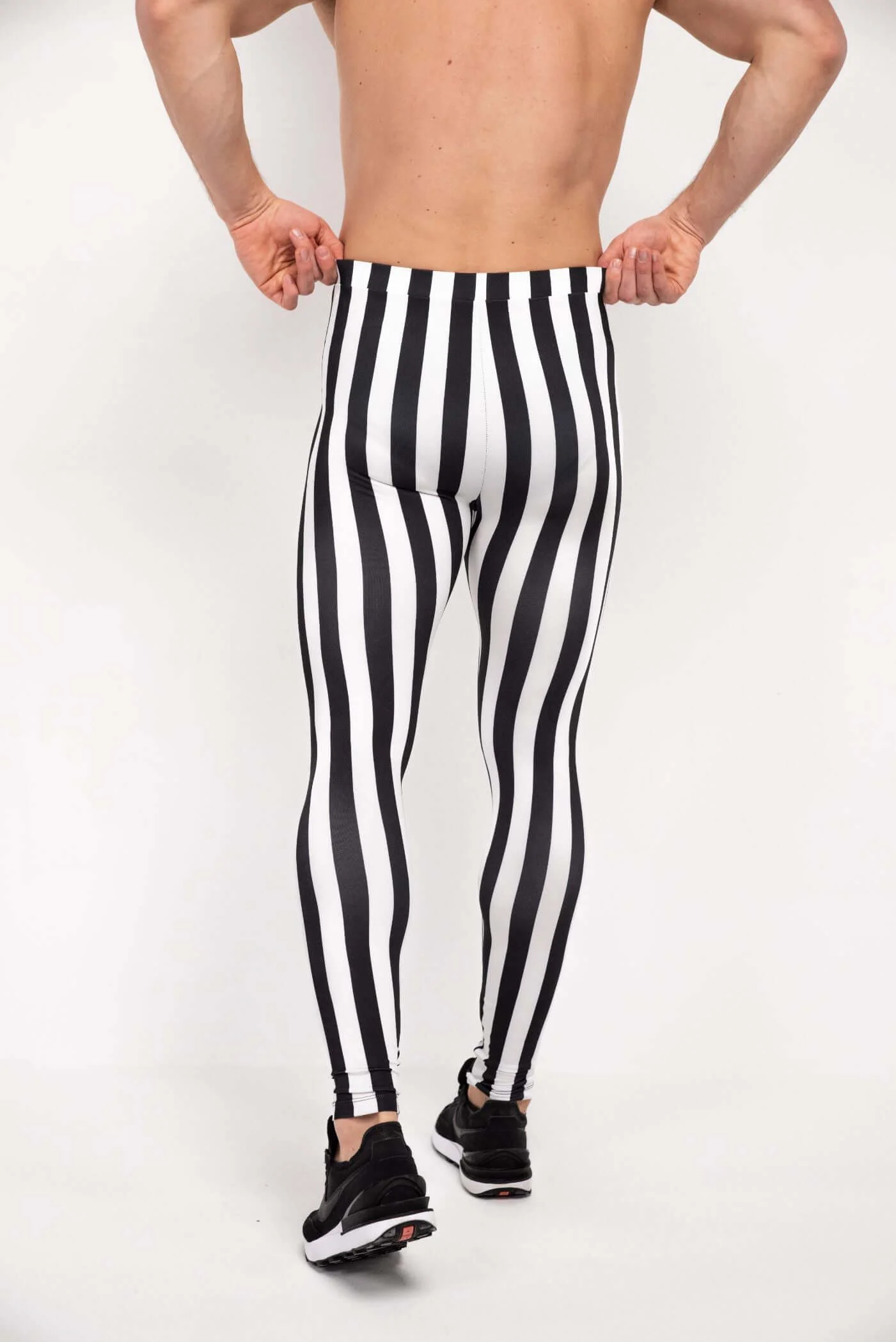 - Description: Black & White Striped Men's Leggings