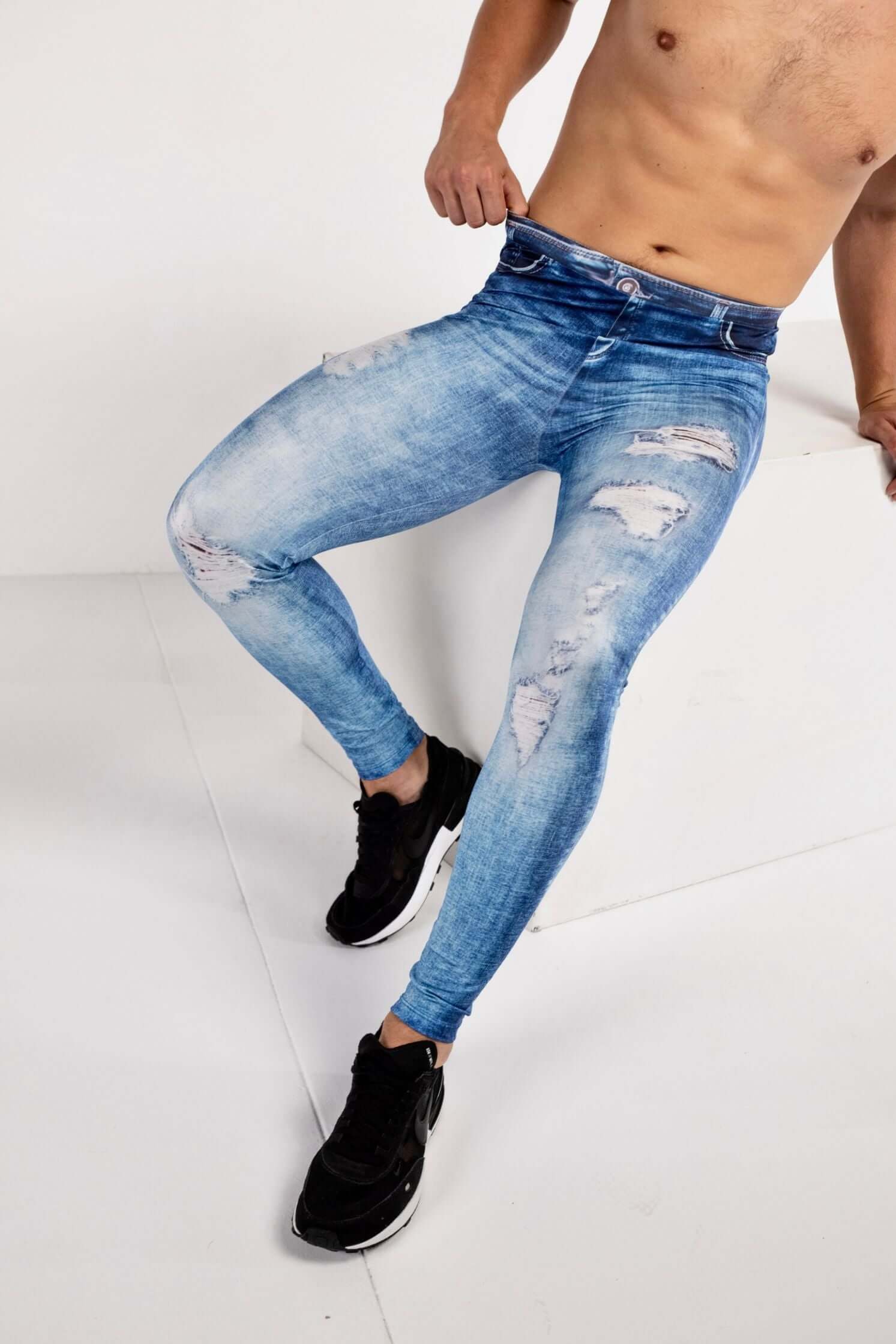 - Description: Blue Jeans Print Men's Leggings.