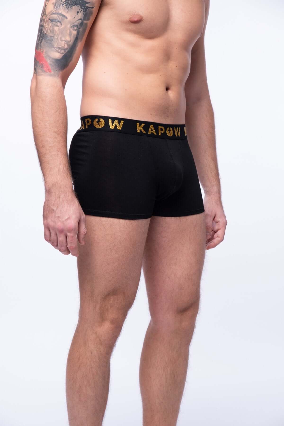 - Description: Black Men’s Underwear Boxer Brief with Gold Waistband