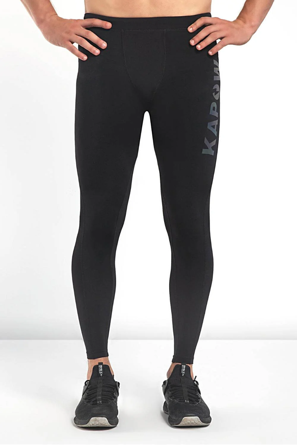 - Description: Black Men's Compression Leggings with Reflective Logo